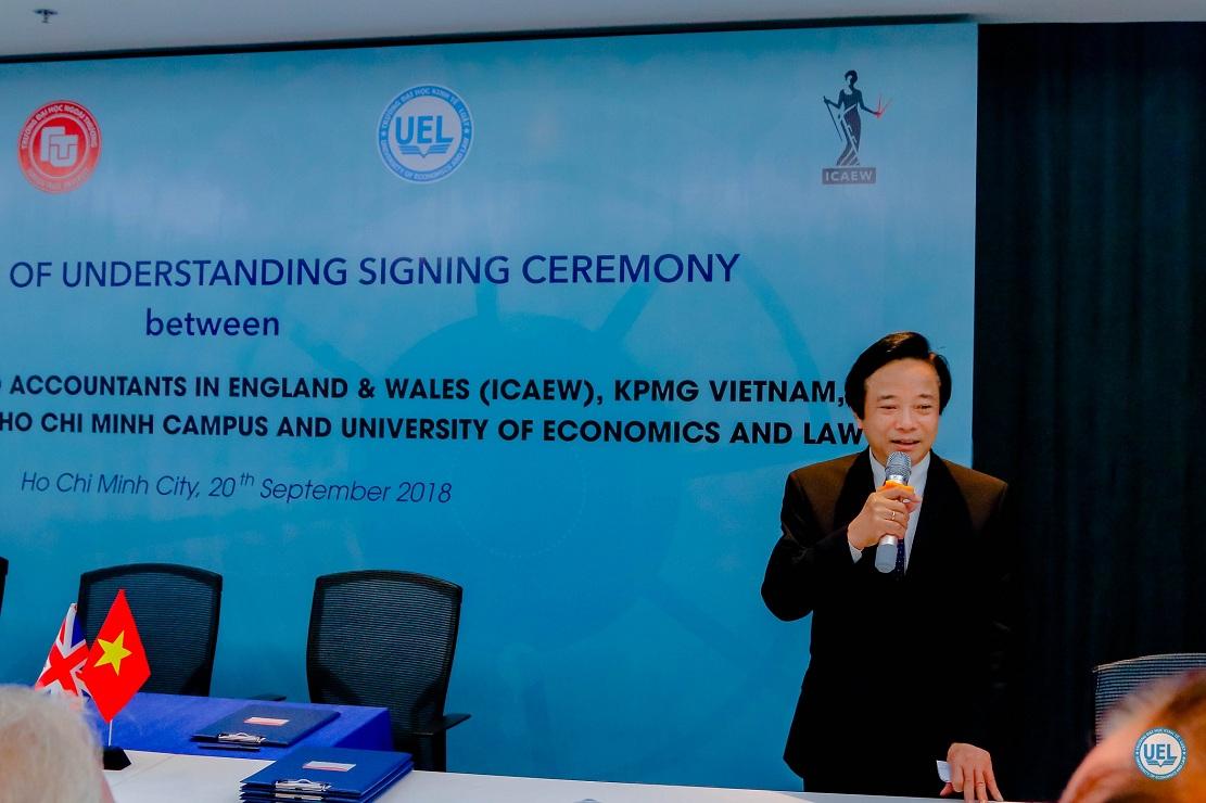 Ngày 20.9.2018, Trường ĐH Kinh tế - Luật (UEL) đã ký kết bản ghi nhớ hợp tác với công ty KPMG và Viện Kế toán Công chứng Vương quốc Anh và xứ Wales (ICAEW), hai đơn vị quốc tế nhiều uy tín và kinh nghiệm trong lĩnh vực kế toán - kiểm toán.