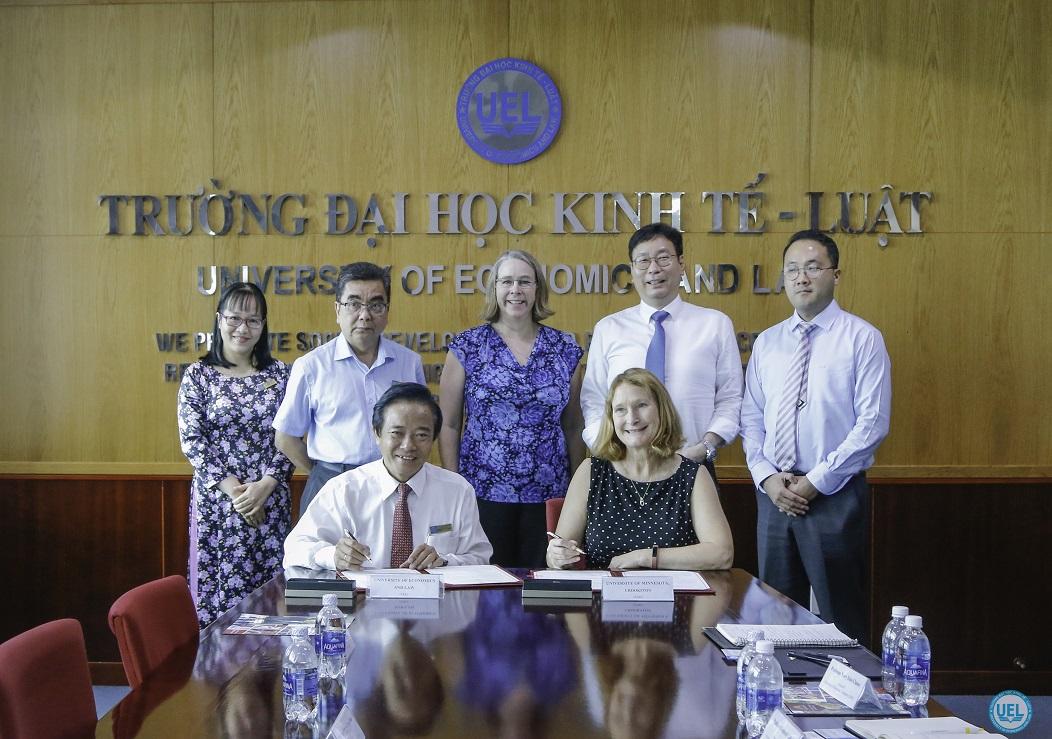 Ngày 03.12.2018, Trường Đại học Kinh tế - Luật và Trường Đại học Minnesota (Hoa Kỳ) đã ký kết biên bản ghi nhớ hợp tác, hỗ trợ lẫn nhau trong công tác đào tạo.
