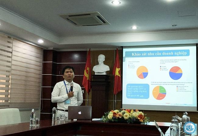 Đại diện lãnh đạo khoa Toán kinh tế trình bày bảo vệ đề án