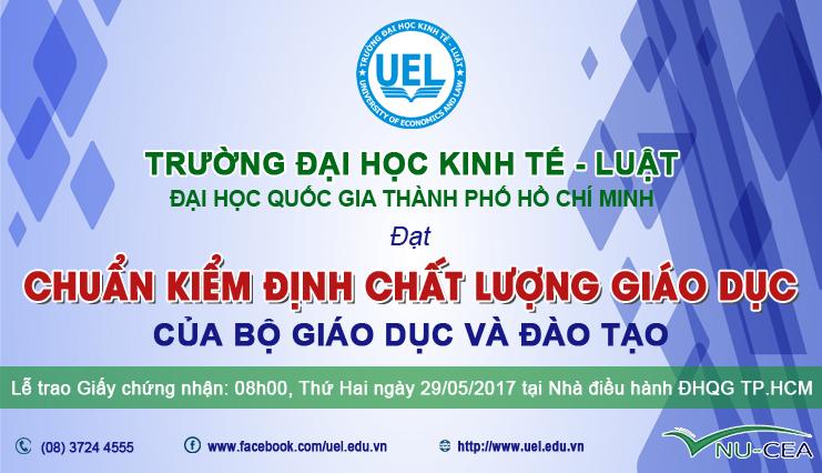 Vào sáng ngày 29.05.2017 sắp tới, ĐHQG TP.HCM sẽ tổ chức Lễ công bố Quyết định và trao giấy chứng nhận Kiểm định chất lượng giáo dục cho các trường thành viên, trong đó có Trường Đại học Kinh tế - Luật.