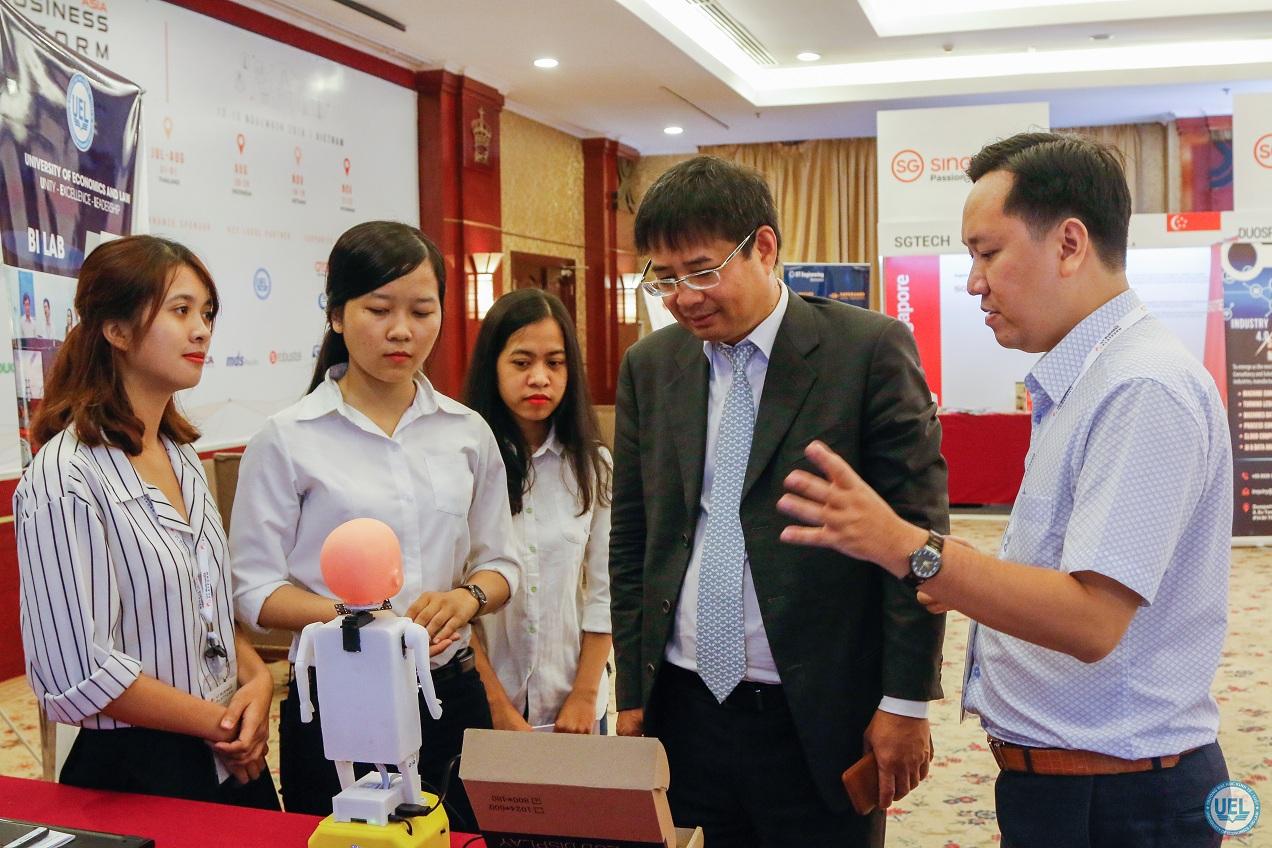 Tham gia Diễn đàn, Trường Đại học Kinh tế - Luật, ĐHQG TP.HCM đã giới thiệu robot trí tuệ nhân tạo do giảng viên và sinh viên nhà trường nghiên cứu phát triển. Robot do TS Lê Hoành Sử cùng các cộng sự tại BI Lab, Khoa Hệ thống thông tin, Trường ĐH Kinh tế - Luật hợp tác với GB Smart nghiên cứu và chế tạo.