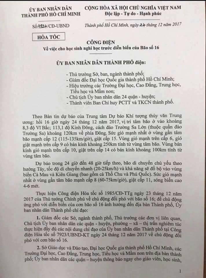 Toàn văn công điện số 7924/CĐ-UBND của Uỷ ban nhân dân TP.HCM