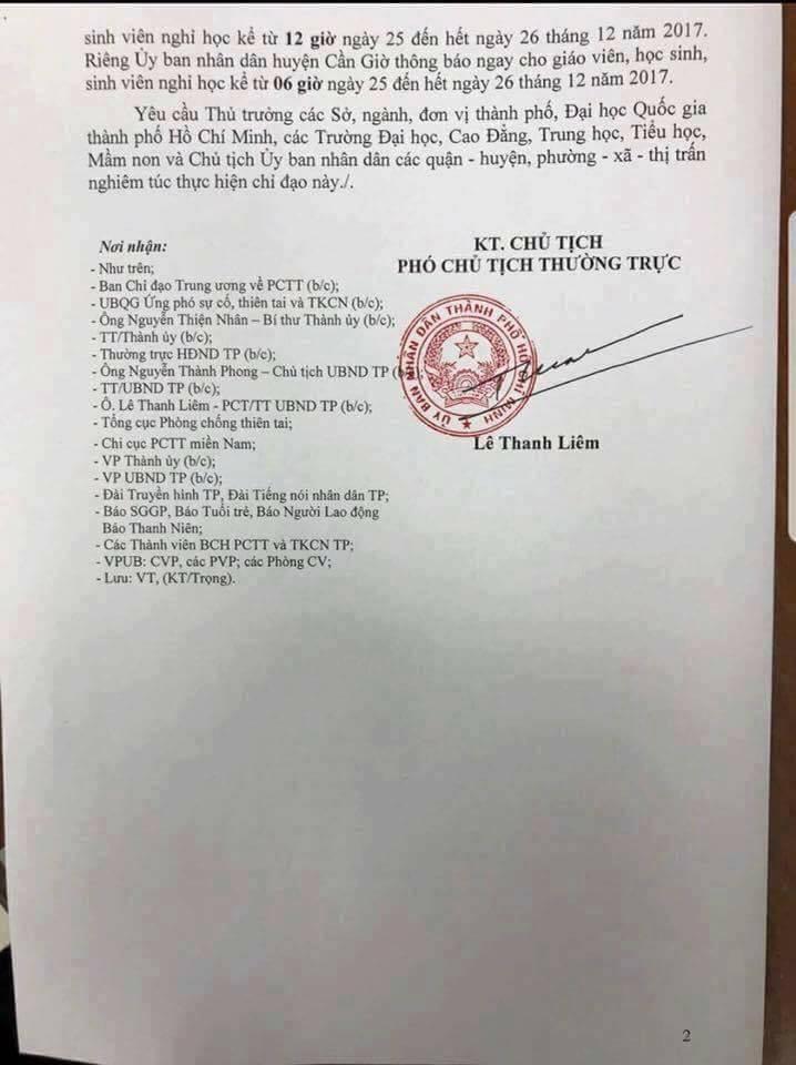 Trường ĐH Kinh tế - Luật truyền đạt ý kiến của lãnh đạo ĐHQG TP.HCM và Ban Giám hiệu nhà trường về việc cho phép sinh viên nghỉ học và thi từ 12h00 ngày 25/12/2017 đến hết ngày 26/12/2017 trước diễn biến của Bão số 16.