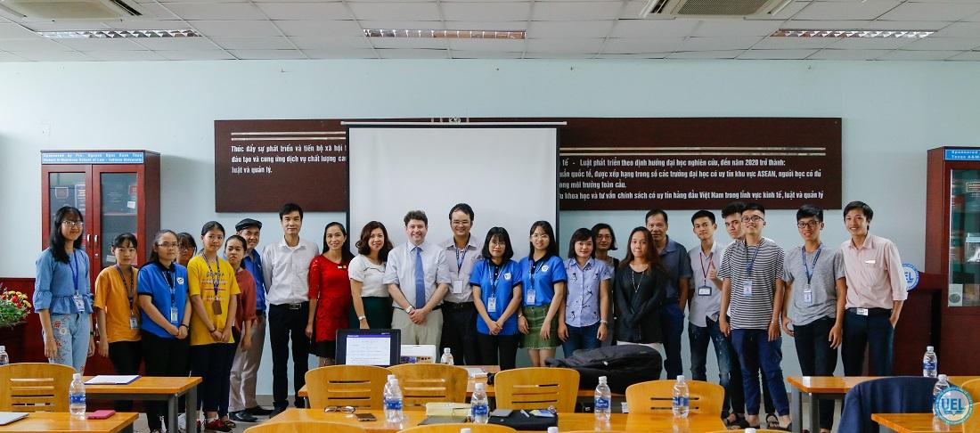 GS John Appleby chụp hình lưu niệm với giảng viên và sinh viên UEL