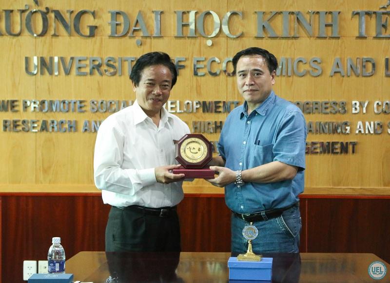 Giám đốc Trung tâm nghiên cứu Khoa học và đào tạo chứng khoán tặng quà lưu niệm cho nhà trường