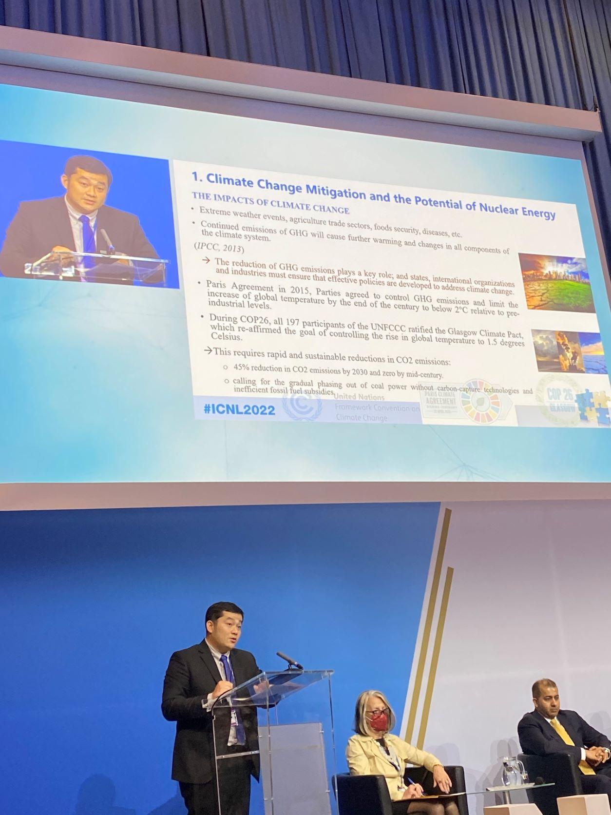 Tiến sĩ Đào Gia Phúc - Viện Trưởng Viện Pháp luật Quốc tế và So sánh Trường Đại học Kinh tế - Luật đại diện đoàn Việt Nam trình bày tham luận tại Hội nghị về chủ đề Triển vọng của năng lượng hạt nhân trong ứng phó với biến đổi khí hậu và hàm ý chính sách cho các nước khu vực Đông Nam Á. Được biết đây là tham luận được trình bày duy nhất của Việt Nam tại Hội nghị. Bài trình bày của diễn giả TS Phúc được Hội nghị quan tâm, đánh giá cao.