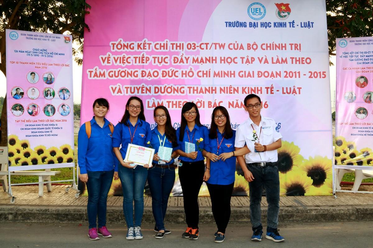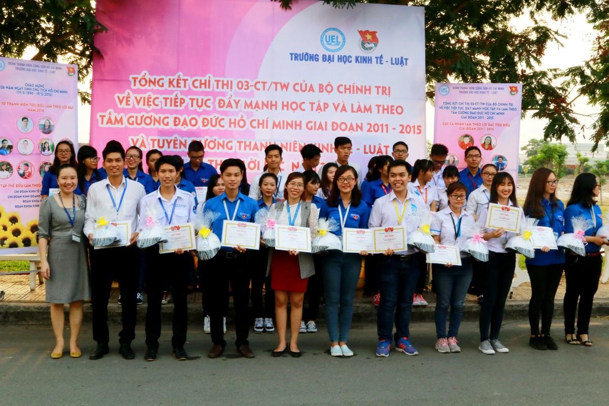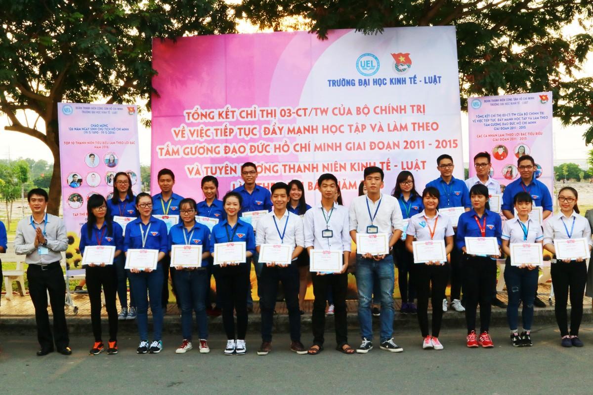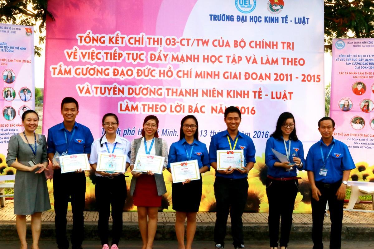 Tại buỗi Lễ, Đoàn trường đã tuyên dương 76 điển hình cá nhân, 04 tập thể làm theo lời Bác năm 2016, trong đó bình chọn ra 10 cá nhân tiêu biểu nhất trên 03 lĩnh vực: học tập - nghiên cứu khoa học, quản lý, hoạt động đoàn thể và văn - thể - mỹ. Cùng 07 cá nhân, 03 tập thể làm theo làm bác tiêu biểu thực hiện Chỉ thị 03 - CT/TW giai đoạn 2011 - 2015; trong đó có nhiều bạn đạt danh hiệu Cán bộ - Giảng viên trẻ, Cán bộ Công chức trẻ - giỏi - thân thiện cấp Thành - ĐHQG HCM, sinh viên 05 tốt cấp Thành, thủ lĩnh sinh viên toàn quốc. Ngoài ra, Đoàn trường cũng các tập thể, cá nhân tham gia tích cực các hoạt động của Ngày hội Thanh niên Kinh tế - Luật làm theo lời Bác 2016.