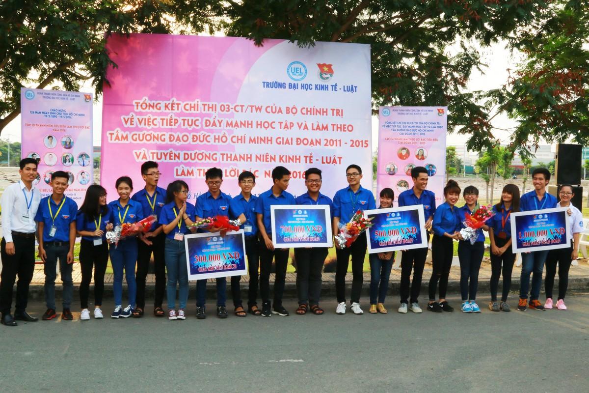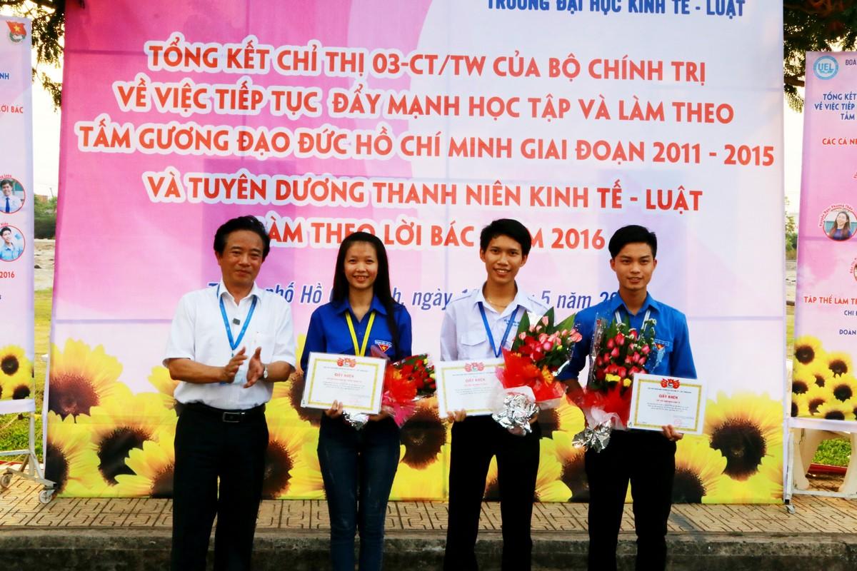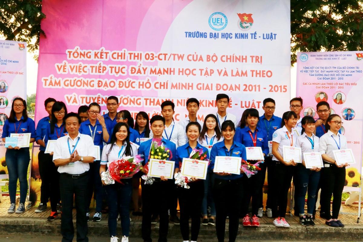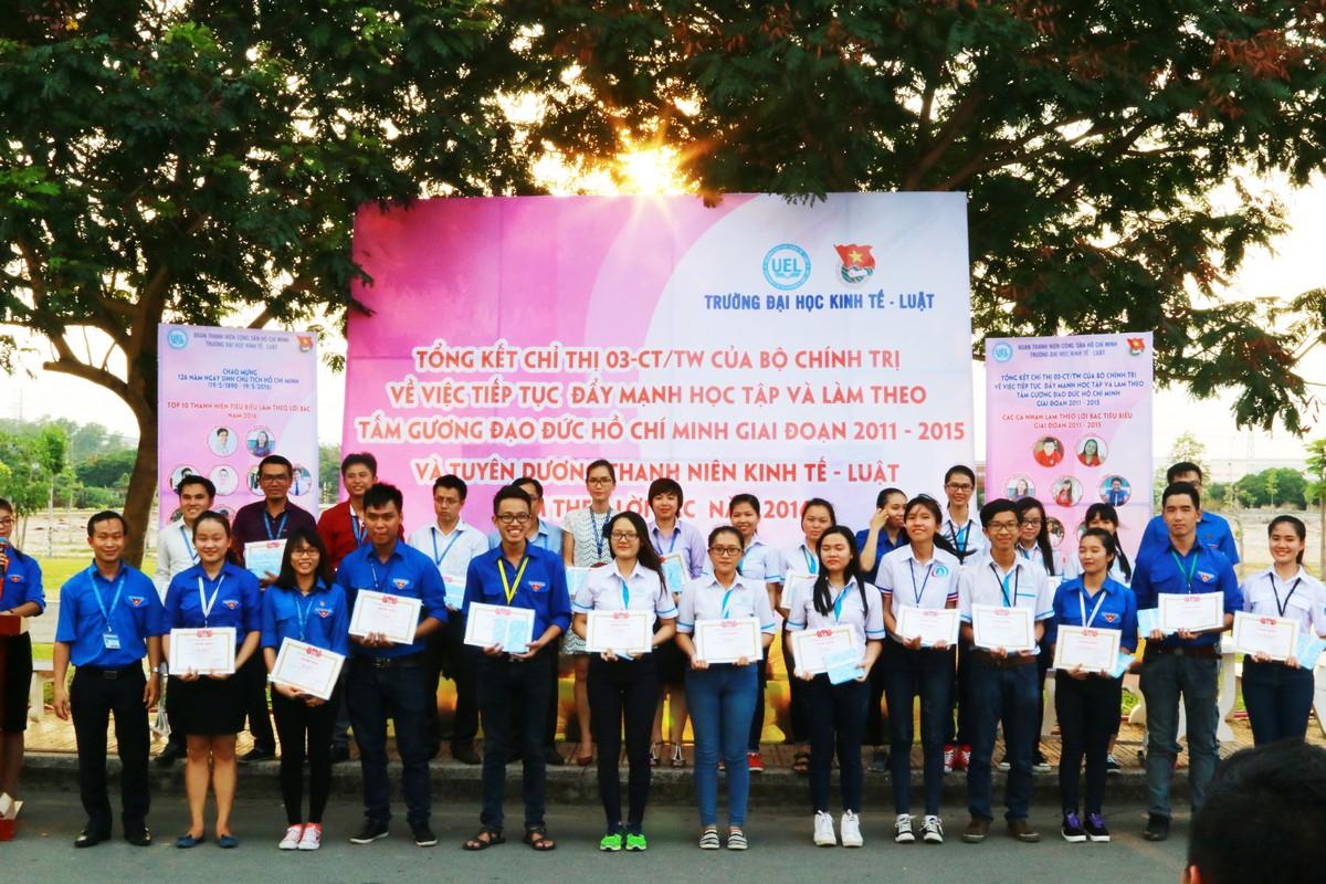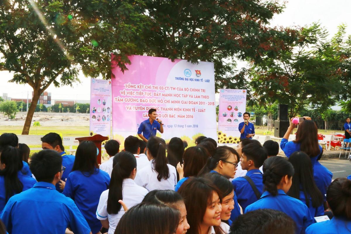 Tại buỗi Lễ, Đoàn trường đã tuyên dương 76 điển hình cá nhân, 04 tập thể làm theo lời Bác năm 2016, trong đó bình chọn ra 10 cá nhân tiêu biểu nhất trên 03 lĩnh vực: học tập - nghiên cứu khoa học, quản lý, hoạt động đoàn thể và văn - thể - mỹ. Cùng 07 cá nhân, 03 tập thể làm theo làm bác tiêu biểu thực hiện Chỉ thị 03 - CT/TW giai đoạn 2011 - 2015; trong đó có nhiều bạn đạt danh hiệu Cán bộ - Giảng viên trẻ, Cán bộ Công chức trẻ - giỏi - thân thiện cấp Thành - ĐHQG HCM, sinh viên 05 tốt cấp Thành, thủ lĩnh sinh viên toàn quốc. Ngoài ra, Đoàn trường cũng các tập thể, cá nhân tham gia tích cực các hoạt động của Ngày hội Thanh niên Kinh tế - Luật làm theo lời Bác 2016.