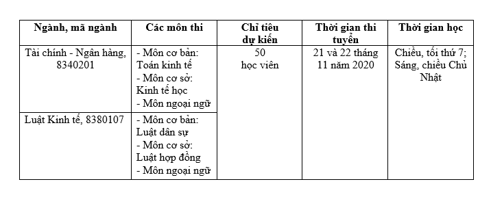 Trường Đại học Kinh tế - Luật, Đại học Quốc gia Thành phố Hồ Chí Minh thông báo kế hoạch tuyển sinh đào tạo trình độ thạc sĩ đợt 2 năm 2020 tại tỉnh An Giang như sau: