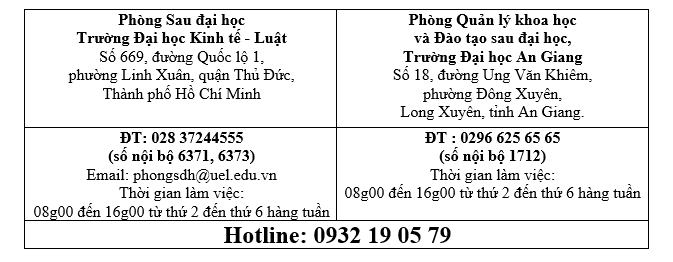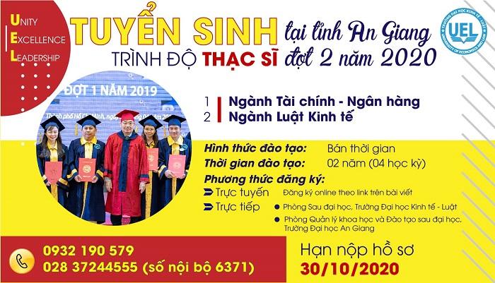 Trường Đại học Kinh tế - Luật, Đại học Quốc gia Thành phố Hồ Chí Minh thông báo kế hoạch tuyển sinh đào tạo trình độ thạc sĩ đợt 2 năm 2020 tại tỉnh An Giang.