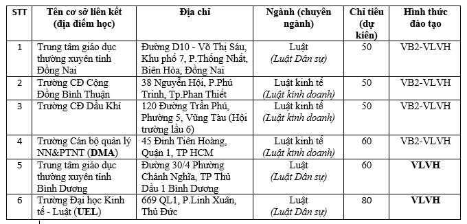 Trường Đại học Kinh tế - Luật (ĐHQG-HCM) thông báo tuyển sinh Văn bằng hai hình thức đào tạo vừa làm vừa học (VB2-VLVH) và Văn bằng một Vừa làm vừa học (VLVH) trình độ đại học khối ngành Luật đợt 2 năm 2020.