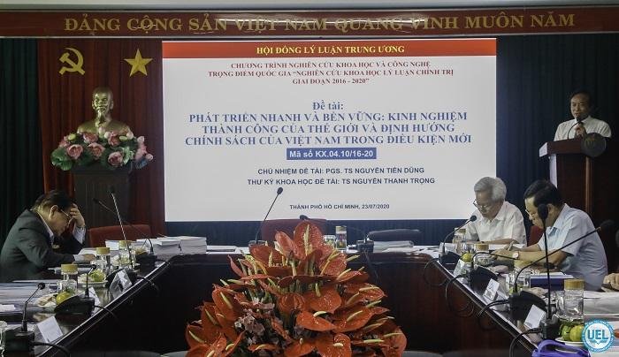 Đề tài "Phát triển nhanh và bền vững: Kinh nghiệm thành công của thế giới và định hưỡng chính sách của Việt Nam trong điều kiện mới", mã số KX.04.10/16-20, do Trường Đại học Kinh tế - Luật, ĐHQG-HCM là cơ quan chủ trì và PGS.TS Nguyễn Tiến Dũng là chủ nhiệm đề tài