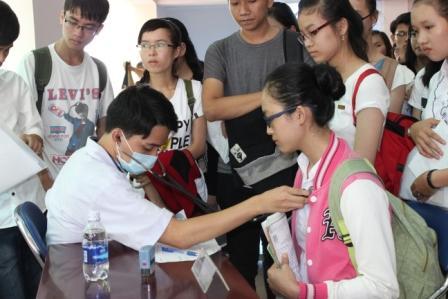 Các tân sinh viên được khám sức khỏe trước khi vào làm thủ tục nhập học.