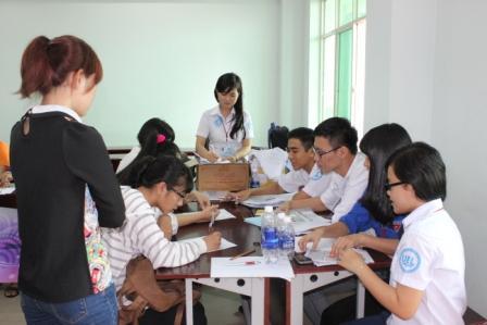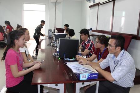 Các Thầy, Cô ân cần hướng dẫn và tiếp nhận hồ hơ nhập học cho các tân sinh viên.