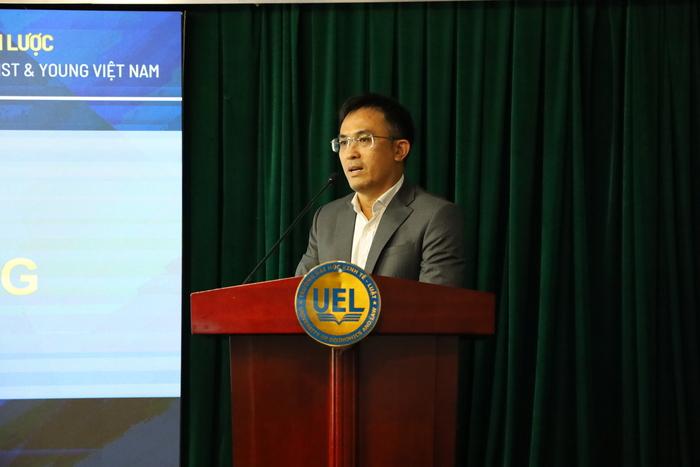 Ngay sau buổi lễ là hội thảo nghề nghiệp với chủ đề "Better You - Better Us" do ông Phạm Nhật Khánh - Chủ nhiệm kiểm toán của EY trình bày với đông đảo các bạn sinh viên UEL.