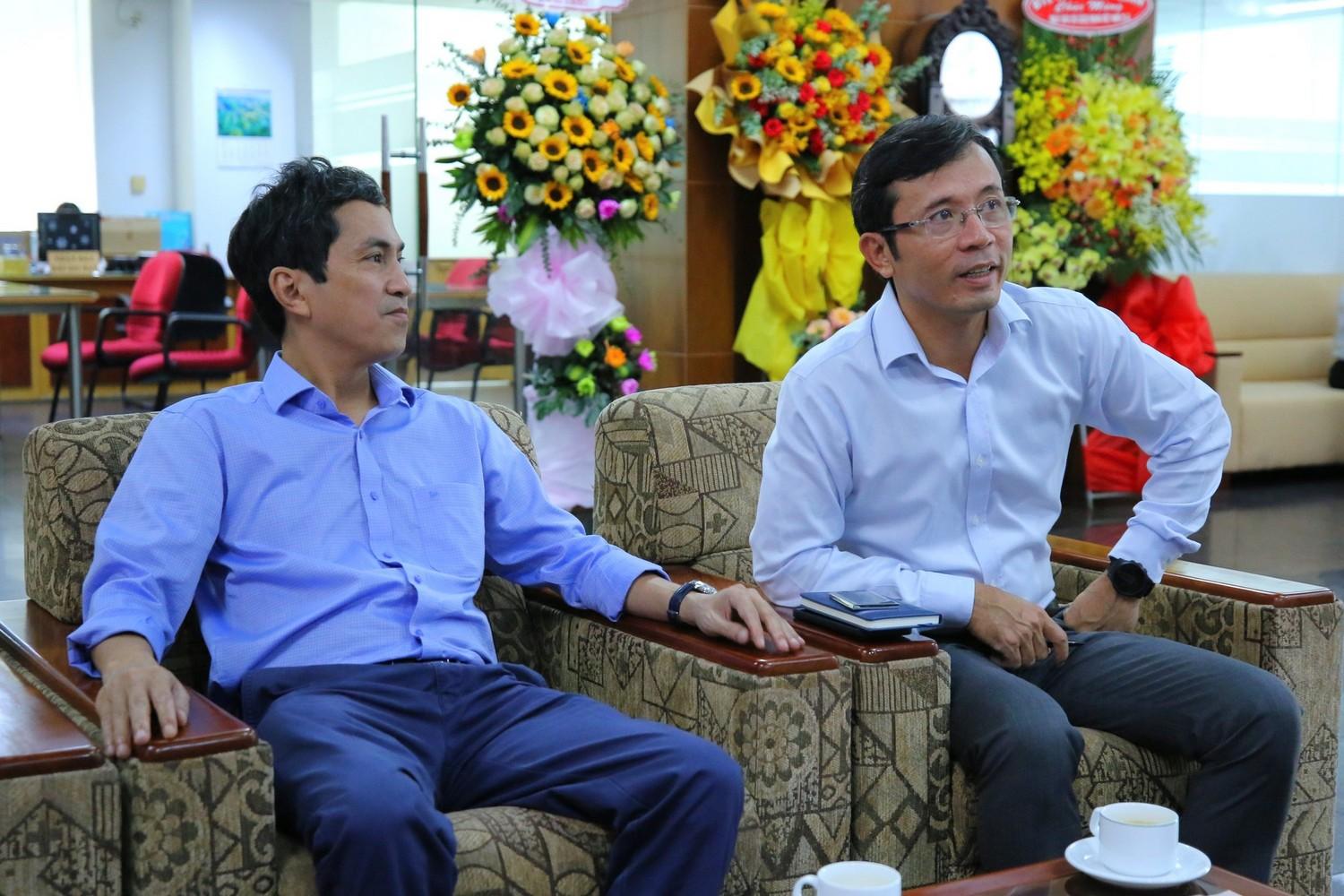 Nhà báo Trần Xuân Toàn, Phó tổng biên tập báo Tuổi Trẻ (ngồi bên phải) trao đổi các nội dung hợp tác giữa hai đơn vị