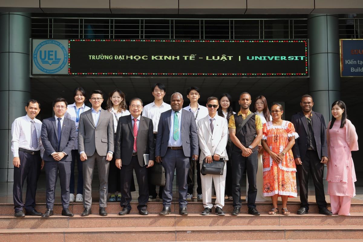 Ngày 20/01/2025, hai đơn vị đã có buổi làm việc, thiết lập mối quan hệ đối tác dựa trên tình hữu nghị và hợp tác, nhằm thúc đẩy sự hiểu biết lẫn nhau và tăng cường sức mạnh của cả hai bên. Đón tiếp đoàn làm việc của Vanuatu, về phía Trường Đại học Kinh tế - Luật có PGS.TS Lê Vũ Nam - Phó Hiệu trưởng nhà trường cùng lãnh đạo Phòng Hợp tác phát triển, lãnh đạo phòng Đào tạo và đại diện sinh viên quan tâm đến nền giáo dục tại Vanuatu.