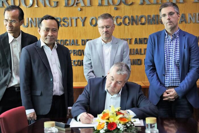 Sáng 21/10, Trường Đại học Kinh tế - Luật đã tiếp ông Pierre-Yves Jeholet, Bộ trưởng-Thủ hiến Chính phủ Cộng đồng người Bỉ nói tiếng Pháp Wallonie-Bruxelles nhân dịp ông thăm chính thức Việt Nam từ ngày 15-21/10/2022.