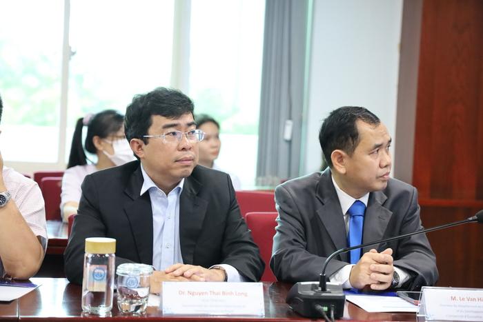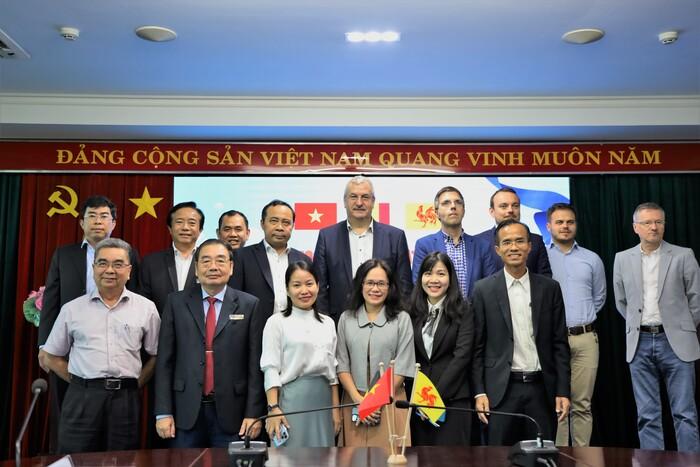 Cũng tại buổi gặp mặt, PGS.TS Lê Tuấn Lộc - Bí thư Đảng ủy, Chủ tịch Hội đồng Trường chia sẻ rất vui mừng được phái đoàn Wallonie tài trợ kinh phí triển khai dự án hỗ trợ củng cố hệ thống pháp lý của Việt Nam trong đánh bắt cá trên biển bền vững. Dự án mặc dù bị ảnh hưởng bởi đại dịch COVID-19 nhưng vẫn tổ chức được hai hoạt động bao gồm hội thảo quốc tế và UEL đã cử ba nhân sự sang nghiên cứu với GS. Phillipe Vincent.