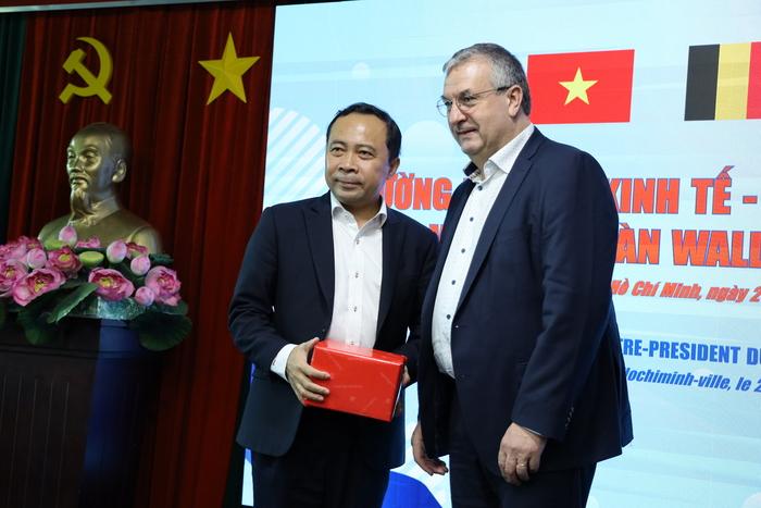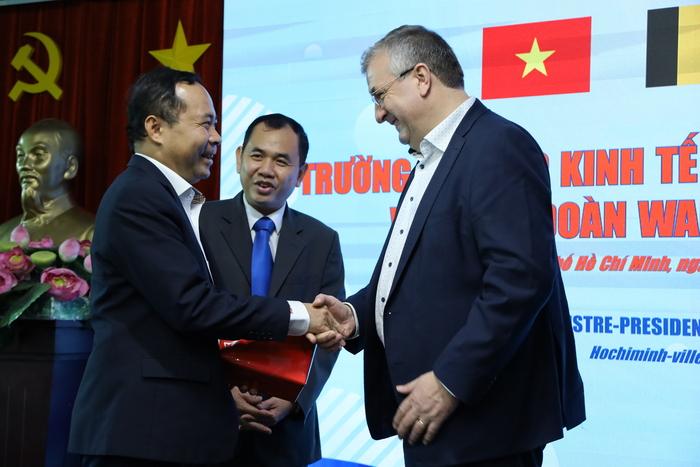 Về phần mình, Bộ trưởng-Thủ hiến Pierre-Yves Jeholet bày tỏ vui mừng lần đầu tiên đến thăm Việt Nam và cảm ơn lãnh đạo ĐHQG-HCM cũng như Trường Đại học Kinh tế - Luật đã dành thời gian tiếp Đoàn; chúc mừng những thành tựu hợp tác chung của 02 bên trong thời gian vừa qua; khẳng định Bỉ nói chung và Wallonie-Bruxelles nói riêng luôn coi Việt Nam là đối tác ưu tiên, quan trọng tại khu vực và mong muốn củng cố hơn nữa quan hệ hợp tác nhiều mặt với Việt Nam đặc biệt là các hợp tác về củng cố pháp lý đối với ĐHQG-HCM cụ thể là Trường Đại học Kinh tế - Luật.