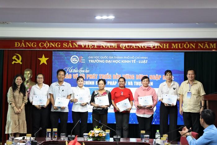 Tham dự hội thảo có sự góp mặt của Bà Phan Bình Minh - Đại diện Cục Bảo tồn thiên nhiên và đa dạng sinh học thuộc Tổng cục Môi trường, Bộ Tài nguyên và Môi trường, Sở Nông nghiệp và Phát triển nông thôn TP. HCM; TS. Phạm Quang Tú - Nhóm trưởng, Ban Thư ký Quỹ JIFF, Phó Giám đốc Quốc gia, Tổ chức Oxfam tại Việt Nam; TS. Huỳnh Đức Hoàn - Trưởng Ban Quản lý Rừng phòng hộ huyện Cần Giờ; Bà Nguyễn Thị Ngọc Thuý - Phó chủ tịch Hội Liên hiệp Phụ nữ Huyện Cần Giờ; Bà Nguyễn Minh Huệ - Hiệu trưởng, trường TH Cần Thạnh, huyện Cần Giờ; Ông Nguyễn Thanh Tuấn - Hiệu trưởng trường TH Cần Thạnh 2, huyện Cần Giờ; TS Trương Văn Vinh - Phó trưởng Khoa Lâm nghiệp, trường ĐH Nông Lâm, TP.HCM - Cố vấn dự án; TS. Dương Kim Thế Nguyên - Trưởng Khoa Luật, Trường Kinh tế, Luật và Quản lý Nhà nước, Trường Đại học Kinh tế TP.HCM; TS. Võ Trung Tín - Trưởng Bộ môn Luật Đất đai - Môi trường, Khoa Luật Thương mại, Trường ĐH Luật TP. HCM; Ông Tăng Phương Giản - Đại diện chương trình Mekong delta, Liên minh Bảo tồn Thiên nhiên Quốc tế (IUCN); PGS.TS Lê Vũ Nam, Phó hiệu trưởng Trường ĐH Kinh tế - Luật, PGS.TS Nguyễn Ngọc Điện - Cố vấn cao cấp, Viện Pháp luật Quốc tế và So sánh Trường ĐH Kinh tế - Luật; TS. Đào Gia Phúc - Viện trưởng, Viện Pháp luật quốc tế và So sánh Trường ĐH Kinh tế - Luật.