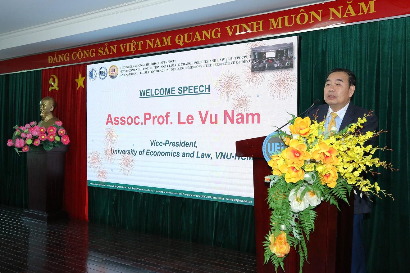 Thực hiện chiến lược phát triển về khoa học công nghệ, Trường Đại học Kinh tế - Luật, ĐHQG-HCM đã chủ trì và thực hiện các dự án, đề tài quốc tế với chủ đề về bảo vệ môi trường, ứng phó với biến đổi hậu hướng tới sự phát triển bền vững. Đây là hướng nghiên cứu đang nhận được nhiều sự quan tâm của giới học thuật trên thế giới. Phát biểu chào mừng, khai mạc và đề dẫn của PGS.TS Lê Vũ Nam, TS Chu Mạnh Hùng và PGS.TS Đoàn Đức Lương cùng khẳng định vai trò quan trọng của việc cắt giảm phát thải khí nhà kính trong bối cảnh các quốc gia thực hiện cam kết mạnh mẽ để đưa mức thải ròng về "0" (Net-Zero Emissions) vào giữa thế kỷ XXI. Trên cơ sở xác định vấn đề bảo vệ môi trường, ứng phó với biến đổi khí hậu là xu hướng phát triển tất yếu của toàn cầu, đại diện lãnh đạo 03 đơn vị đồng tổ chức kỳ vọng Hội thảo quốc tế EPCCPL 2023 sẽ trở thành một trong những diễn đàn thường niên để các học giả, nhà nghiên cứu, nhà hoạch định chính sách, các tổ chức và cá nhân, người dân chịu tác động bởi các chính sách pháp luật về bảo vệ môi trường và biến đổi khí hậu cùng nhau đối thoại, thảo luận.