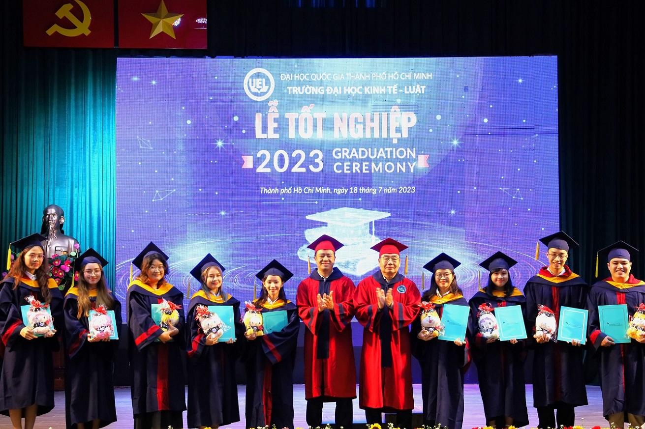 Sáng 18/7/2023, Trường Đại học Kinh tế - Luật đã tổ chức Lễ tốt nghiệp và trao bằng cử nhân năm 2023 cho hơn 1.300 Tân cử nhân đại học hệ chính quy, chương trình liên kết quốc tế, văn bằng 2.