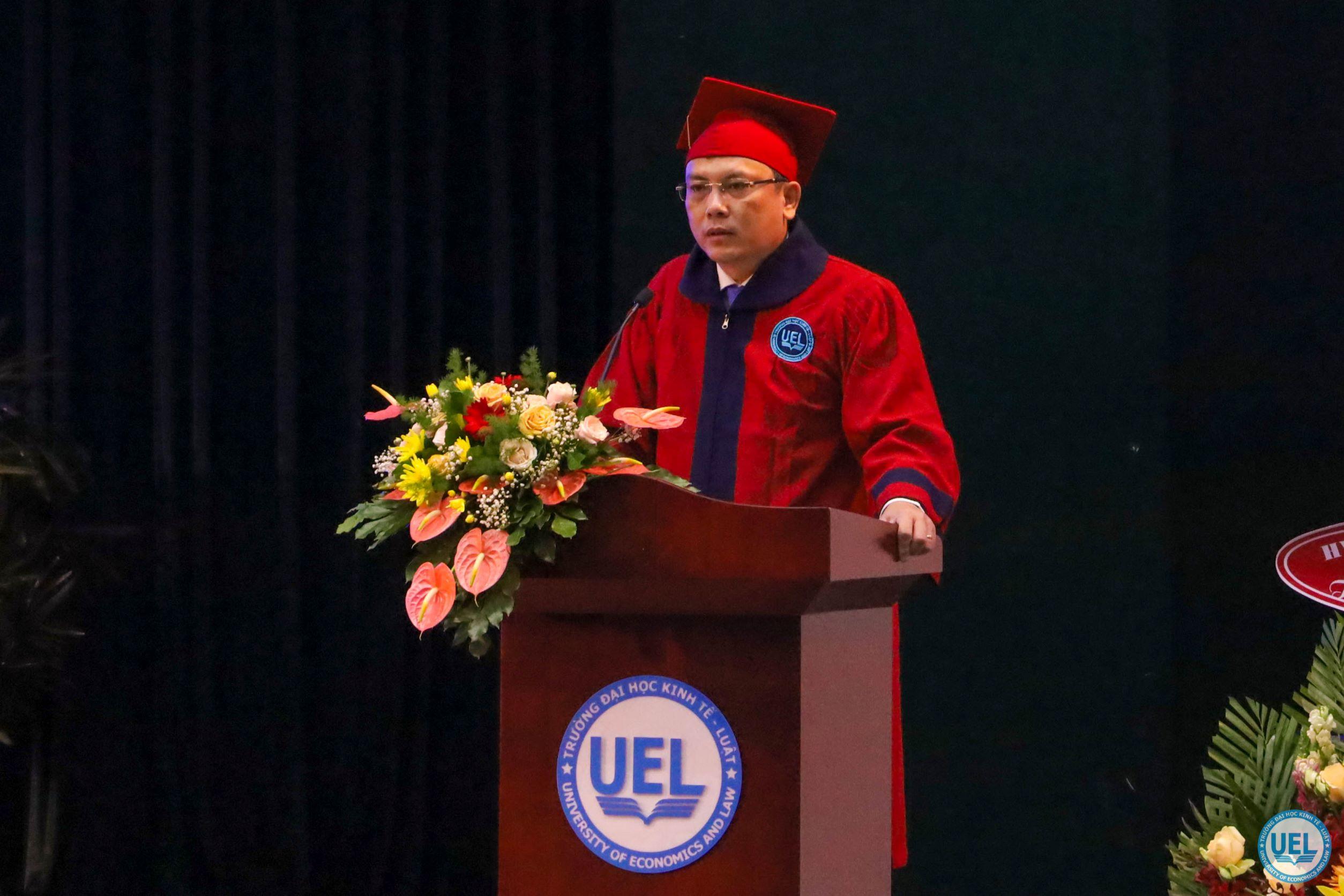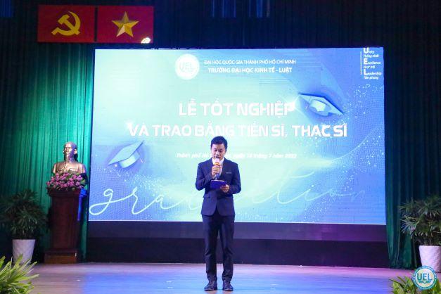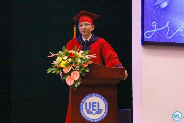"Với những kiến thức và kỹ năng trong quá trình học tập tại Trường Đại học Kinh tế - Luật, chúng tôi tin tưởng rằng các Tân Tiến sĩ, Tân Thạc sĩ sẽ có những sáng tạo đóng góp vào cuộc sống và vào kho tàng tri thức của nhân loại, tiếp tục có nhiều sáng tạo trong công việc, đóng góp vào sự phát triển của đơn vị công tác, giảng dạy và sự phát triển của đất nước." Hiệu trưởng Trường gửi gắm.
