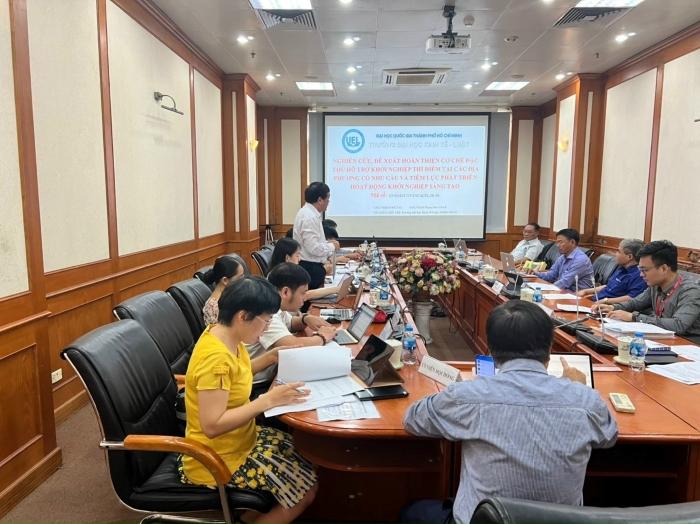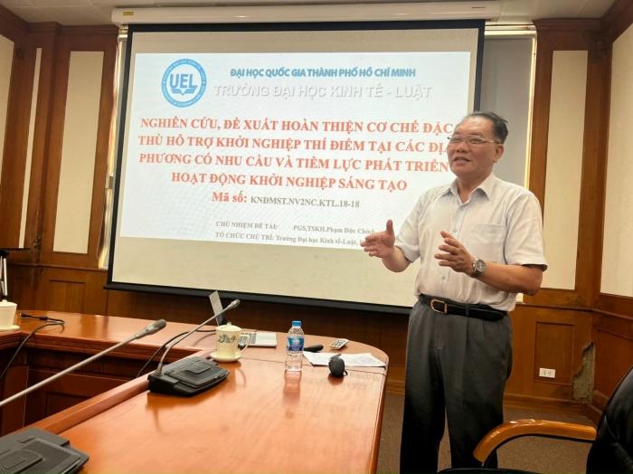 Nhóm nghiên cứu Trường Đại học Kinh tế - Luật đã bảo vệ thành công nhiệm vụ đề tài "Nghiên cứu, đề xuất hoàn thiện cơ chế đặc thù hỗ trợ khởi nghiệp thí điểm tại các địa phương có nhu cầu và tiềm lực phát triển hoạt động khởi nghiệp sáng tạo" do PGS.TSKH Phạm Đức Chính chủ nhiệm đạt loại xuất sắc.